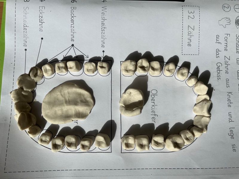 Im Sachunterricht der 2. Klassen haben die SchülerInnen beim Thema “Zähne” das Gebiss mit Knete dargestellt. Es sind tolle Ergebnisse entstanden.